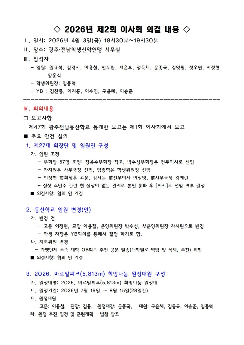 제2회 이사회 2026년 4월 3일 작성자 정보 KorAC 작성 7 조회 작성일 2026.04.09 11:41 컨텐츠 정보 본문 제2회 이사회 회의록 공유합니다 SNS 공유 관련자료 다음 제7회 이사회 2024년 12월 9일 작성일 2025.08.08 댓글 0개 등록된 댓글이 없습니다. 로그인한 회원만 댓글 등록이 가능합니다. 목록